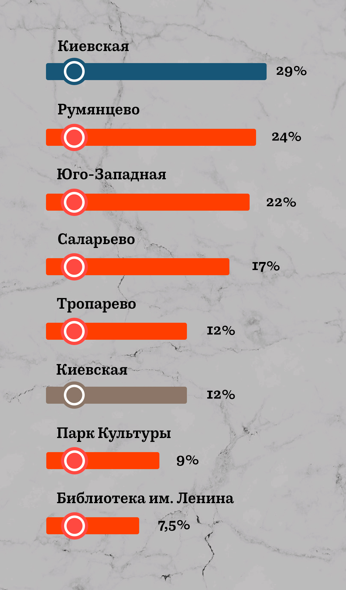 Главное следствие — разгрузка существующих линий. Так, основным выгодоприобретателем стала радиальная «Киевская» (с Киевского вокзала, в том числе, отправлялись электрички в те места, где теперь есть метро) — здесь в часы пик стало почти на треть меньше пассажиров. Соседняя с желтой Сокольническая ветка на юго-западном окончании стала гораздо свободнее — в «Румянцево» спускается на четверть меньше народа, на «Юго-Западной» — на 22%. Другие показатели можно видеть в инфографике «Москвич Mag».