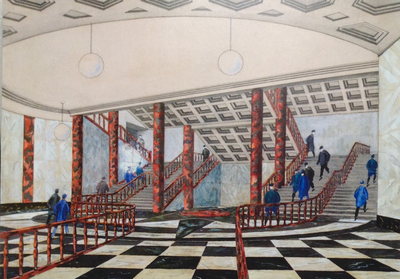 В. А. Веснин, Е. С. Демченко, С. В. Лященко, С. Ф. Зебек. Проект станции «Павелецкая», 1938.