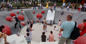 В парке Горького открылась огромная (2 гектара) детская площадка «Салют». Не сразу можно сообразить, где в перенасыщенном разными локациями парке нашлось столько места.
