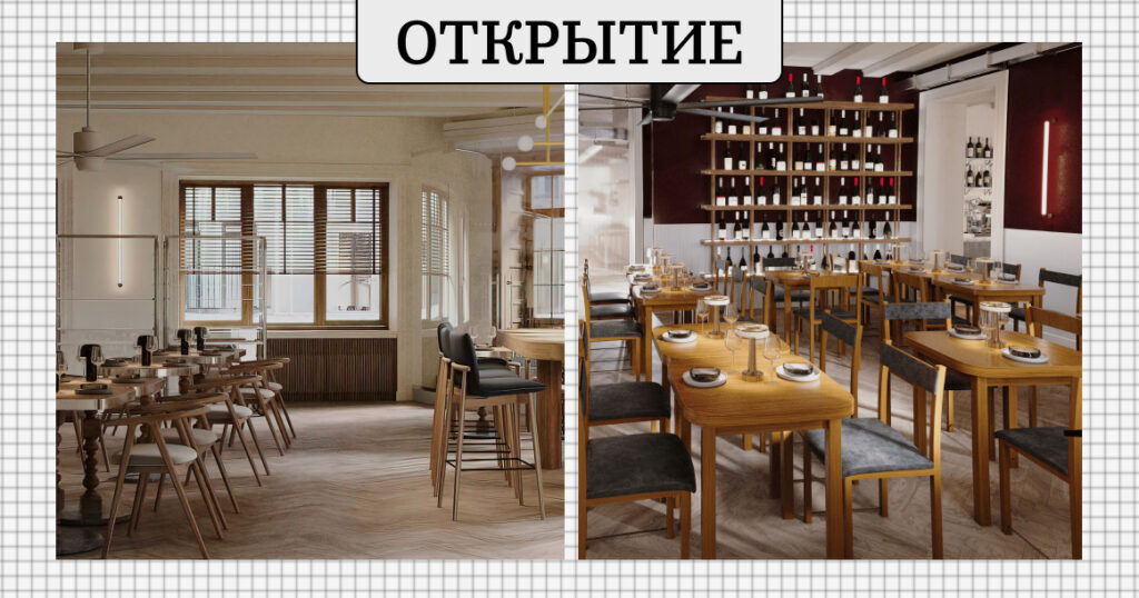 Судя по рендерам, интерьер в новом ресторане будет довольно спокойным, без демонстративной «французскости»: светлые стены, выбеленные балки, много воздуха и дневного света из больших окон с жалюзи. В таком пространстве действительно уместны и кофе, и бокал вина. Отдельно в ресторане предусмотрен камерный зал примерно на 30 человек — для ужинов, встреч и завтраков.