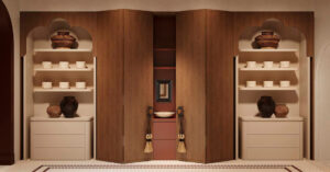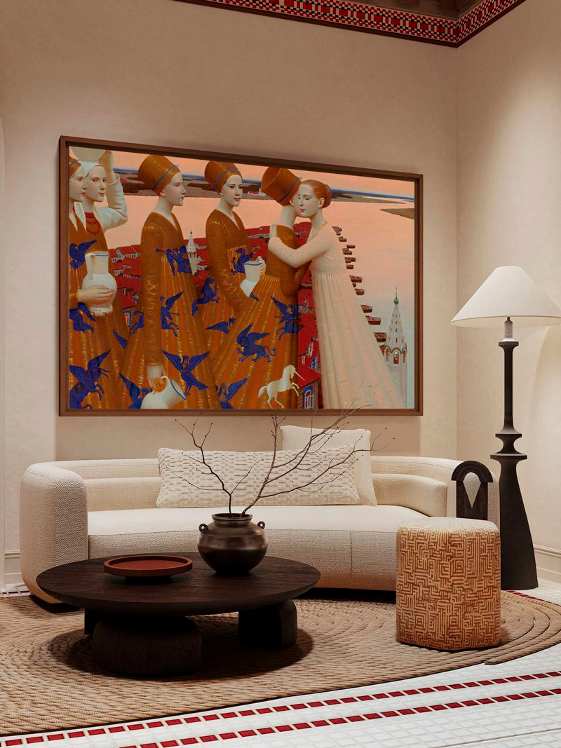 Интерьер «Соловьев» — отдельный разговор. По визуализациям бани выглядят как смесь новой русской эстетики — без откровенных «лаптей» — и премиального курортного спа. Много теплого дерева, округлой мебели, текстиля и приглушенных оттенков — бежевого, молочного, терракотового. Полы с узорчатой плиткой, арки с орнаментами, плюс изразцовая печь — пожалуй, главный интерьерный герой пространства. Встречаются картины, декоративные светильники и арт-объекты, которые, видимо, должны помогать входить в это состояние особенного ритуала.