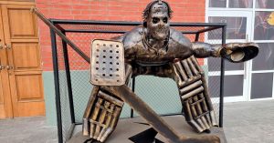 А именно сюда, в московский «Парк Легенд» на «Автозаводской», этот памятник и привезли на днях. Его доставили из Курганской области — это подарок Владиславу Третьяку в честь 70-летия от ЗАО «Курганстальмост», как сказано на табличке у скульптуры. Сообщают, что вратаря поставили у Музея хоккейной славы.