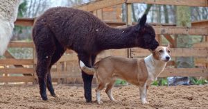Феномены дружбы животных всегда притягивают внимание: достаточно вспомнить дружбу козла Тимура и тигра Амура в Приморском сафари-парке. Тогда козла Тимура пустили в вольер к тигру, чтобы хищник его съел, но Амур не стал этого делать. До сих пор гадают, почему это произошло: то ли потому что тигр был сыт, то ли потому что козел проявил доминирующее поведение. Но животные подружились и вместе играли, спали рядом. Они стали настоящими знаменитостями. У собаки Джесси и альпаки Чернички тоже есть все шансы стать звездами интернета.