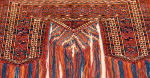 Это костюмы и отдельные предметы одежды, среди которых есть редкие и уникальные образцы, большая коллекция знаменитых туркменских ковров и ковровых изделий (торбы, которые подвешивались к стенам юрты и заменяли шкафы, молитвенные коврики, надверные занавесы), предметы конского и верблюжьего убранства (например, серебряная упряжь с сердоликовыми вставками) и, конечно, украшения — 130 предметов из Особой кладовой музея.
