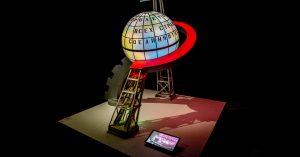 По замыслу создателей, выставка к 100-летию плана ГОЭЛРО выглядит как гигантская электросхема, где в темноте с помощью тщательно продуманной световой сценографии высвечены отдельные объекты, экспонаты, к которым тянешься и притягиваешься — свет на выставке мерцает и дышит, а иногда и ослепляет, вспыхивая там и тут посреди тьмы и сумрака задрапированных черным стен.