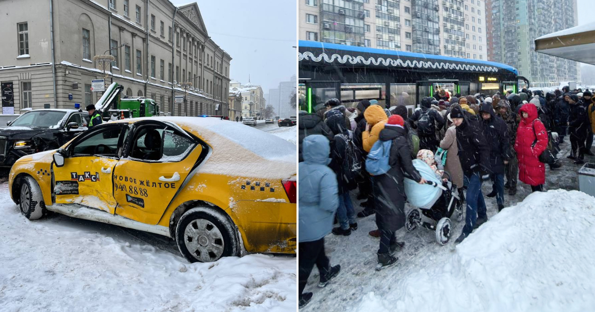 Аварии, многочасовые пробки и забитые остановки: в Москве снегопадный коллапс
