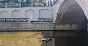 Машина быстро ушла под воду — сейчас с набережной виднеется только крыша авто. Для поднятия автомобиля из реки был выслан пожарно-спасательный автокран, на месте работают оперативные службы.