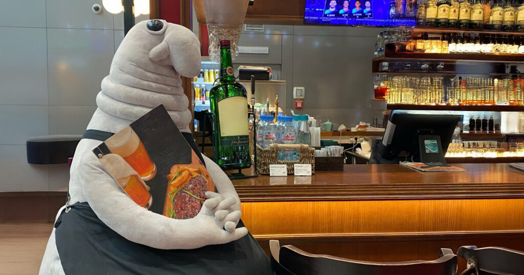 Владельцы Shannon’s Irish Bar в Шереметьево, кажется, об этом не догадывались, иначе бы они не посадили Ждуна перед барной стойкой в качестве рекламы своего заведения. Плюшевый сотрудник в черном фартуке устроился на высоком барном стуле и встречал гостей с меню в руках. И все бы ничего, если бы об этом не узнали в CD Land.