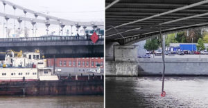 Разрушены, передает ТАСС, оказались рельсы. Сейчас их демонтируют, чтобы еще кто-нибудь не врезался, ведь один рельс повис над водой. Потом будут устанавливать новые. «Стрела находившегося на барже крана задела пути качения смотровой люльки», — объяснили в беседе с агентством представители ГБУ «Гормост». Там добавили, что «функционирование сооружения осуществляется в обычном режиме».