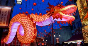 В эти выходные Москва впервые на официальном уровне встретила китайский Новый год. Тверскую площадь, Камергерский переулок, Новый Арбат и ВДНХ украсили красными фонарями с золотыми кисточками, лентами с иероглифами, сулящими счастье и удачу, веерами и бумажными зонтиками, а также изображениями дракона — зодиакального знака 2024 года.