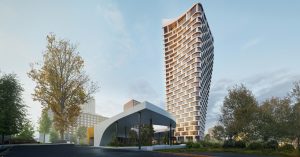 Высота здания составит 27 этажей, а в подвале будут парковка и технические помещения. Во дворе со стороны набережной расположатся детские и спортивные площадки.