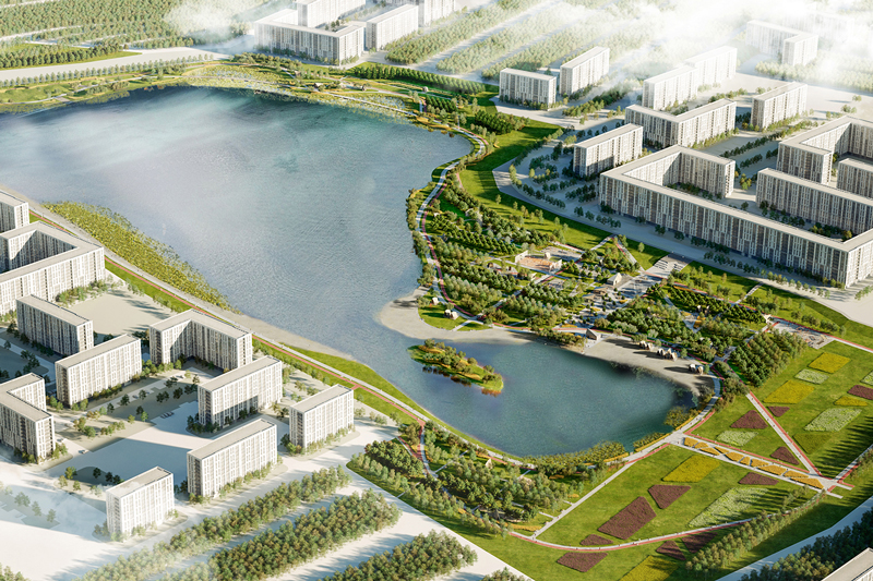 Территорию вокруг озера разобьют на шесть зон, отличающихся по функциональности: городской парк с кафе, беседками, прокатом, детской площадкой, парк со спортплощадками и беговым маршрутом, пейзажный парк с тропиночной сетью (видимо, имеется в виду прогулочный), парк на холмах и охранная зона линий электропередачи, которую засеют злаковыми культурами и создадут ландшафт русского поля.