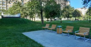 Проблема в другом — проектировщики просто не учли локальный контекст. Лавочки поставили прямо возле небольшого зеленого холмика. Летом непросто догадаться, что в зимнее время это любимое окрестными детьми место для катания с горки. Теперь эта забава под угрозой: скользя по накатанному склону, можно запросто влететь в железные конструкции модных скамеек и расшибиться.