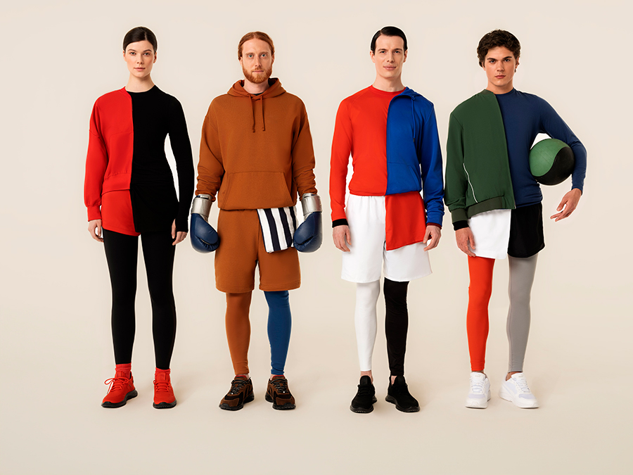 Для кампании было создано 13 визуалов, отсылающих к культовым полотнам разных времен. Вот «Спортсмены» Малевича, вот «Купание красного коня» Петрова-Водкина, вот «Девочка на шаре» Пикассо. В кадр также попал тренировочный реквизит: штанга, футбольный мяч, сайкл-тренажеры и даже реформер.