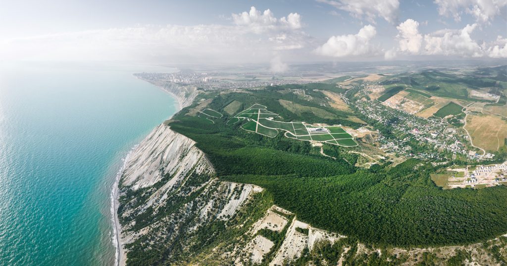Меньше чем в 100 км от французского шато стоит ультрасовременное здание винодельни «Скалистый берег». Московский архитектор Александр Балабин в 2019 году представил, а в 2020-м реализовал проект, который уже получил несколько архитектурных премий. В одном из интервью Балабин рассказывал, что предложил заказчику четыре варианта: традиционный тосканский, немецкий в стиле Баухауса, швейцарский технологичный и североитальянский. А пятый, самый радикальный, нарисовал для себя. В итоге его и выбрали.