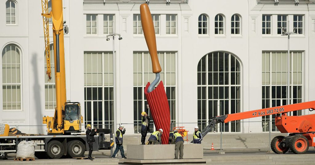 Новая скульптура у «ГЭС-2», которую прямо сейчас устанавливают вместо «Большой глины №4» Урса Фишера — «Садовая лопатка» Класа Олденбурга и Кошье ван Брюгген. Впервые она выставлялась на крыше нью-йоркского Метрополитен-музея, а теперь добралась и до нас.