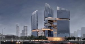 Бюро Steel представило смелую концепцию с высотными зданиями и, как сейчас модно, парящими мостами между ними. Проект удивляет масштабом: почти 600 тыс. кв. м недвижимости, половина из которых жилье, а вторая — офисы. Однако, по мнению экспертов, он носит скорее архитектурный, чем практический характер. Несмотря на интересный внешний вид, функционал парящих мостов остается загадкой.