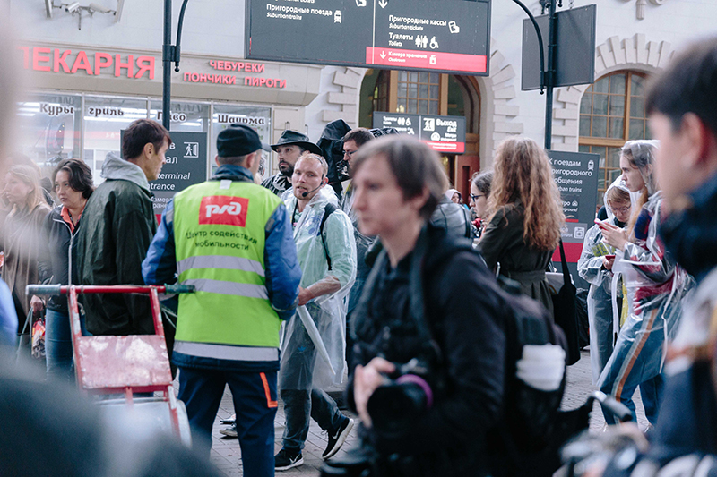 В пятницу, несмотря на третий день как оккупировавший Москву проливной дождь, в холле Казанского вокзала собралась небольшая толпа, состоявшая, правда, в основном из журналистов.