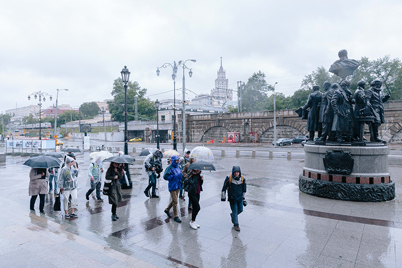 К сожалению, приглашение на эту экскурсию так и не получила известная активистка Кэри Гуггенбергер, которая в прошлом году подняла чуть ли не все население Савеловского района на борьбу с инициативами «Ночлежки». Впрочем, ей, скорее всего, было бы скучно. Ожидаемого формата «Москва глазами… » не получилось, да и вряд ли такую прогулку удалось бы организовать, не скатываясь в откровенную пошлость того, что на английском языке называется povertyporn, а на русском, к сожалению, не имеет перевода. Под руководством нашего гида, бывшего бездомного, а ныне волонтера «Ночлежки» Дмитрия, и под проливным дождем мы прошли от перрона Казанского вокзала до треугольного сквера между Рязанским проездом и Каланчевской, еще немного помокли там, вернулись под путепровод и разошлись. Все это время Дмитрий рассказывал нам свою историю, действительно душераздирающую и чудовищно несправедливую. Но все это происходило в начале 2000-х годов, и с тех пор как сам вокзал, так и его окрестности были облагорожены мэрией чуть ли не до самоварного блеска. Смотреть было решительно не на что. В наши дни бездомных у трех вокзалов можно увидеть либо в переходах, либо в окрестных скверах, но лишь в те часы, когда благотворительные организации приезжают туда их кормить. Во все остальное время их гоняет полиция.