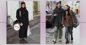 Она: Шуба и брюки из ЦУМа, таби Maison Margiela, сумка Gucci.