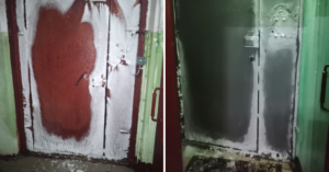 «Каждое утро — силовой фитнес. Кто первый, тот выбивает дверь», — делится жительница Перово в районной группе в фейсбуке. На одной из фотографий видно, что дверь полностью обледенела по кругу, но больше всего — снизу. Как раз оттуда и начинается по утрам ее «обработка» — сначала лед приходится откалывать ногами, рассказывают жильцы, и только через некоторое время при должном усердии (и наличии физической подготовки) она наконец поддается.