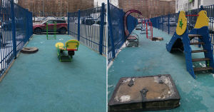 Детская площадка у дома по реновации в Щукино напомнила местным жителям зоопарк и тюрьму