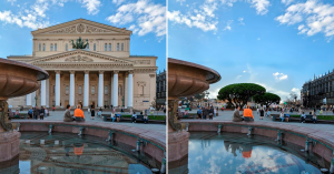 Дизайнер Александр Дериванов на основе новых умений программы сделал серию с фотографиями Москвы: как бы выглядели городские пространства, если бы из них исчезли известные здания и объекты. На фотографиях пропали, например, павильон метро «Чистые пруды», Большой театр, высотка на Котельнической набережной. Места перестали быть узнаваемыми, но в случае с высоткой, например, Москву все равно можно легко узнать по уютным купеческим домикам.