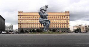 Эта скульптура и Лубянская площадь как будто нашли друг друга. Уже много лет никто не может решить, что должно быть на Лубянской площади: фонтан, памятник Дзержинскому, Невскому, Ивану III или вообще сквер. Архитекторы КБ Стрелка отчаянно боролись за то, чтобы сделать из этого места одно из главных городских пространств, как «Зарядье» или Арбат, но у них ничего не вышло. Архитекторы получили комментарии от резидентов зданий, которые окружают Лубянскую площадь: «Они запретили размещать на площади скамьи, детскую площадку и любые строения, а также попросили заменить деревья кустарниками», — пишет Strelka Mag.
