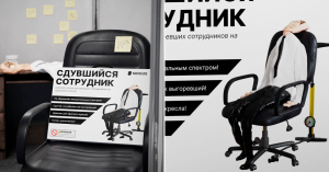«Замените всех выгоревших сотрудников на сдувшуюся куклу! — призывает текст на упаковке. — Не обременен эмоциональным спектром! Сдутый, но работает как выгоревший! Идеален для офисного кресла! Готов к увольнению». Посвятил свою новую работу художник всем когда-либо выгоревшим на работе.