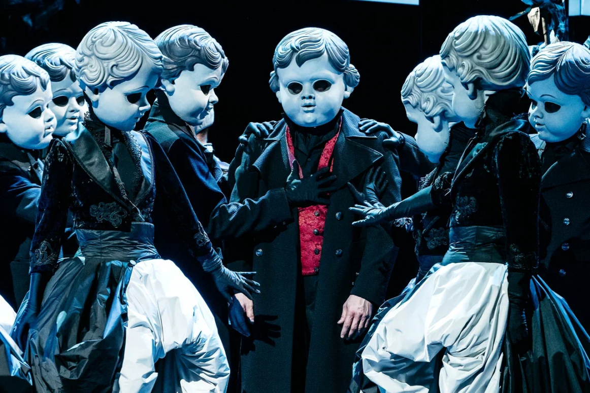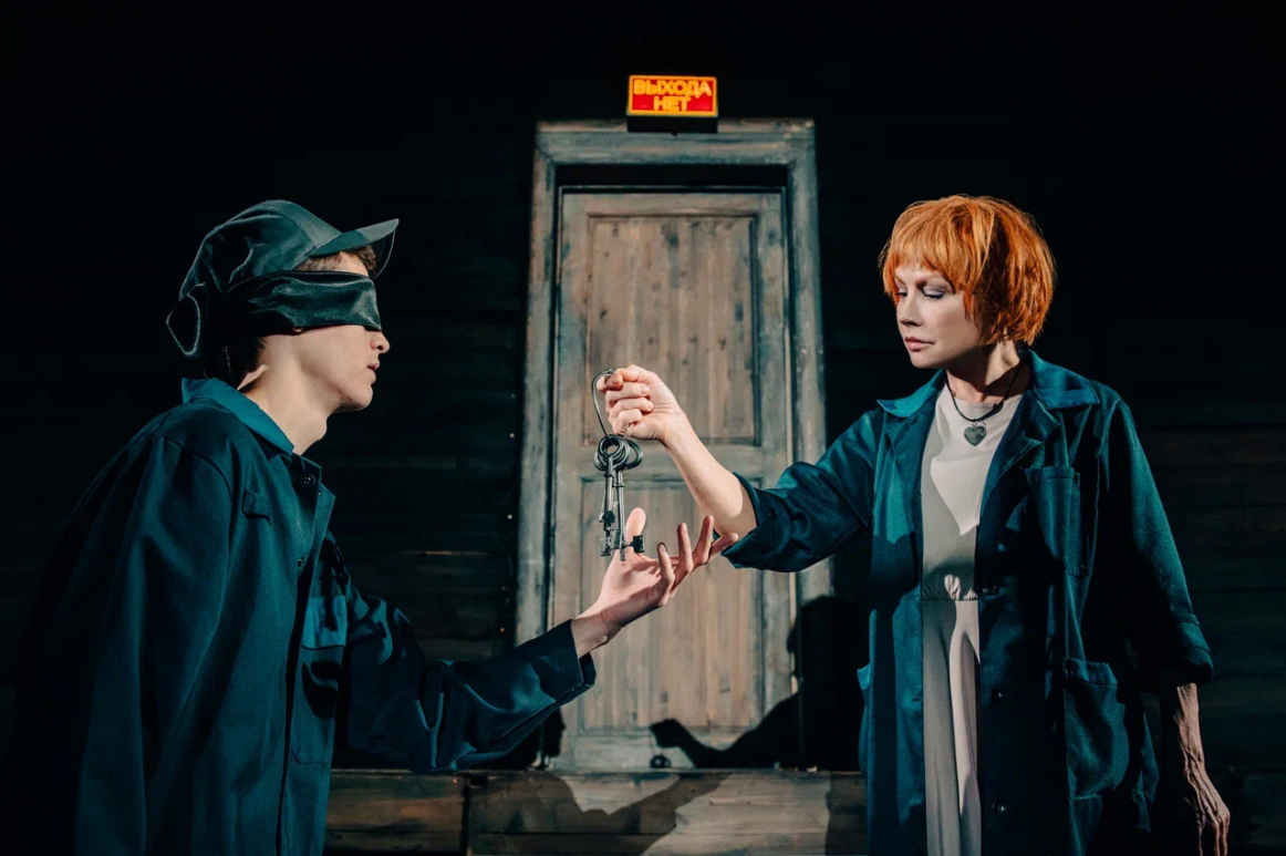 Вращающаяся сцена, зеркально-черные стены, ниши, созданные художником — постановщиком спектакля Максимом Обрезковым, формируют ощущение лабиринта. Персонажи выходят в огромных масках-головах — прием, усиливающий ощущение, что судьба играет нами как куклами. Музыка Павла Акимкина и работа главного балетмейстера театра Сергея Землянского делают телесную выразительность главным языком спектакля. Смысл здесь рождается не в словах, а в движении.