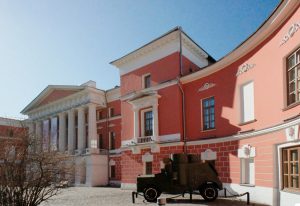 Усадьба с колоннами и «львами на воротáх» (которых в народе ласково именуют «котиками») воспета Пушкиным в «Евгении Онегине». Дворец полукругом замыкает парадный двор и соединяется с флигелями, отгородившись от улицы ажурной решеткой.