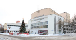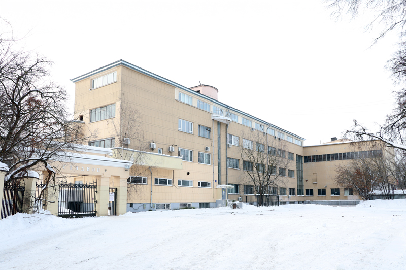 Довольно свободный план здания напоминает крыло самолета, подчеркивая принадлежность к авиационному предприятию, ныне ГКНПЦ им. Хруничева.