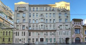 Здание строилось в 1912–1913 годах, в пору строительного бума, когда этажность первопрестольной стремительно росла. Для доходной недвижимости был снесен одноэтажный с мезонином деревянный домишко, принадлежавший майорше Костомаровой, даже несмотря на то что в нем одну зиму жил мальчик Михаил Лермонтов. Елизавета Алексеевна Арсеньева, бабушка будущего поэта, снимала жилье зимой 1829/30 года, когда внук готовился к поступлению в университетский благородный пансион, причем сразу в четвертый класс.