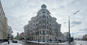 Пересечение улиц Спиридоновки и Садовой-Кудринской акцентировано пятиэтажным с полуподвалом доходным домом. Элегантный архитектурный силуэт фешенебельного жилья образца начала XX века отлично проглядывается издалека.
