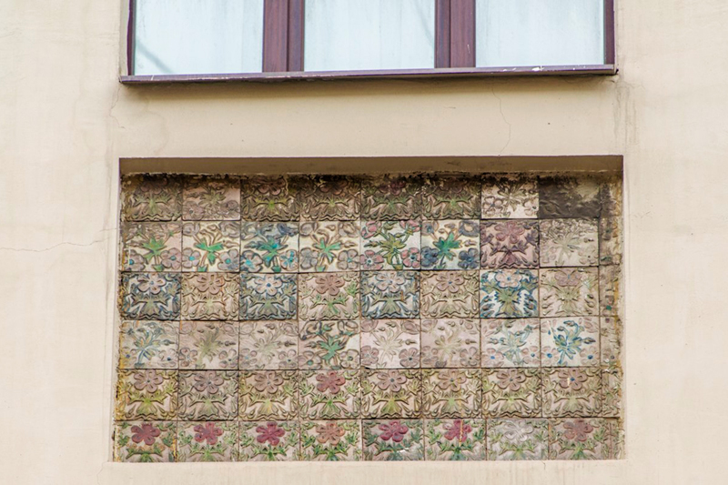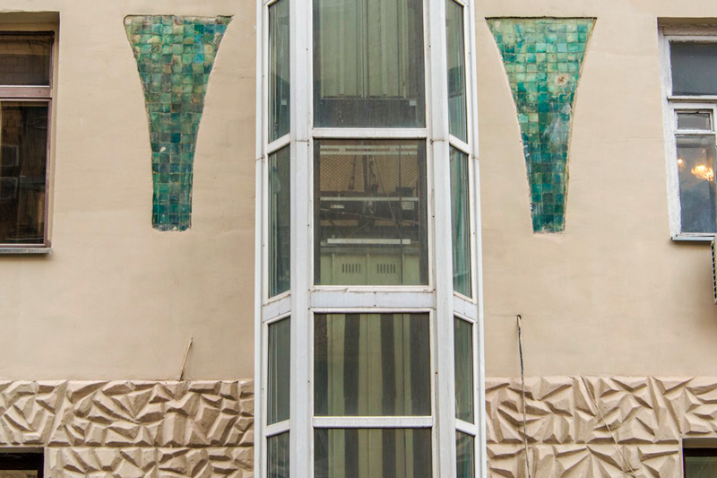 Так нарядный мозаичный декор заполнил отштукатуренные поверхности стен и пятиэтажного дома номер 5 на тихой 4-й Тверской-Ямской улице. Орнаменты из яркой колотой плитки вдавились в бледное поле завершенных кокошниками фронтонов. Кажется, что слегка хаотично. Но нет. Если пристально вглядеться, квадратики соберутся в диковинные соцветия, вызывая в памяти творения Гауди.