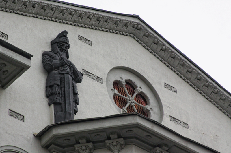 К таковым относится и здание на Большой Полянке, 54, на днях пополнившее список выявленных объектов культурного наследия. Дом сторожили два угрюмых, будто уснувших рыцаря, опирающихся на мечи. Жаль, сохранился только один: другого в 1995 году демонтировали при починке ветхого каркаса, на котором статуя крепилась, но, видимо, разбили или потеряли.