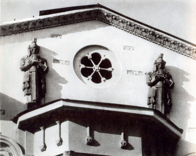 В. Е. Дубовской (1877–1931) любил украшать свои творения фигурами рыцарей в латах, как в доходном доме Анны Тимофеевны Филатовой, совладелицы фирмы Philips Eleсtronics, на Арбате, 35 (1913), доме М. О. Эпштейна в Гусятниковом переулке, 11 (1912).