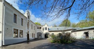 Создавая в 1900–1902 годах одно из ярких своих произведений, звезда русского модерна Федор Шехтель позаботился о комфорте заказчика, предпринимателя Степана Павловича Рябушинского. Подле особняка, в самой глубине участка, архитектор предусмотрел одноэтажные службы и жилой флигель. В плане эти объемы образуют П-образную композицию. Сюда ведет арочный проем въездной арки, направляющий к гаражу: Рябушинские были создателями первого в Москве автомобилестроительного завода.