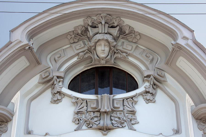 Дом, безусловно, чистейший образец модерна. В нем представлены все черты изысканного стиля: сложная и весьма живописная композиция объема, формирующего угол Поварской и Скарятинского переулка, щедрое использование скульптурной декорации, овальные эркеры, зимний сад, на окна которого методом кислотного травления был нанесен орнамент, волнистые линии, лепные аллегории и символы, женские головки — лорелеи, листья и коробочки мака, решетки прихотливой ковки, ворота, повторяющие форму крыльев бабочки. Во внутреннем убранстве новаторство и роскошь также дополняли друг друга. Интерьер украшали витражи, в том числе трехметровые с жар-птицей и с богом Паном, отделка ониксом, мрамором, карельской березой.