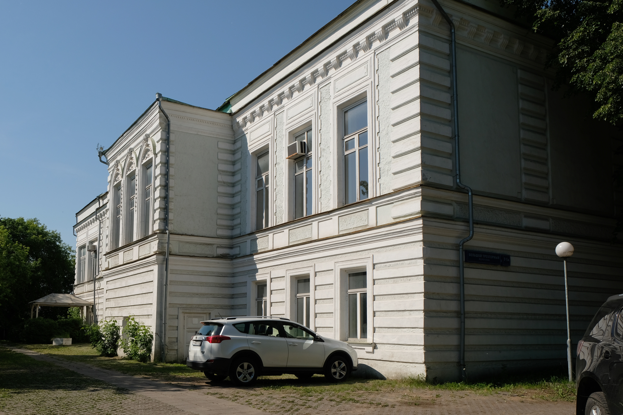 Главный дом (Большой Трехгорный пер., 1–1а, стр. 1), тогда еще деревянный, на каменных сводчатых подвалах, с каменной одноэтажной террасой и парой двухэтажных полукаменных крылец, был возведен им в 1836 году.