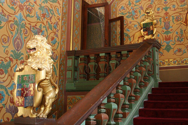 В гербе Юсуповых можно видеть и мусульманский полумесяц, и двуглавого орла, и льва, символ власти и богатства. Скульптура последнего с грозно разинутой пастью украшает парадную лестницу.