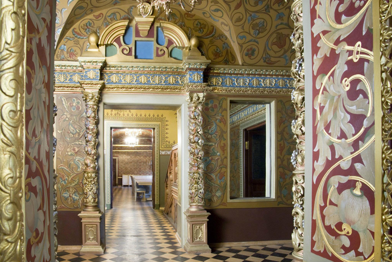 По инициативе Зинаиды Николаевны архитектор Николай Владимирович Султанов создавал интерьеры парадных залов второго этажа дворца в Харитоньевском переулке, дающие гостю представление, какой могла бы быть роскошь в XVII веке. Главное здание предусматривало статусные приемы: супруг Зинаиды Николаевны граф Сумароков-Эльстон тогда был назначен градоначальником. Оставляя дом для балов, семья в иные дни заняла флигель, связанный с основным зданием зимним садом.