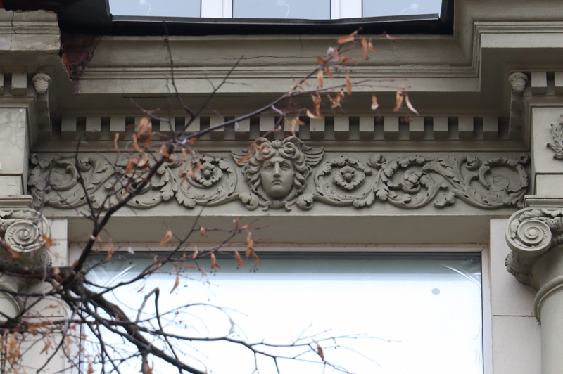 Фасад Клейн тонко декорировал в стилистике московского послепожарного ампира, когда город восстановили после нашествия Наполеона. Здание богато украшено венками славы, гирляндами, щитами и замараевскими львами на замковых камнях. Такие маскароны на рубеже XVIII–XIX веков создавал московский скульптор Гавриил Замараев.