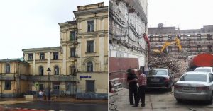Под угрозой то и дело оказываются дома, в которых поэт жил, работал, бывал, даже заходил на минуту. На Большой Никитской, 9/15, стр. 1, князь Александр Сергеевич Долгоруков с женой Ольгой Александровной, урожденной Булгаковой, в 1830-е годы давал балы, куда Пушкин неоднократно был зван.