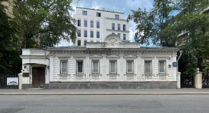 Фасад ампирного домика купчихи Анны Лопатиной Антонов украсил пышным лепным убранством. Трогательность раннего ампира здесь тонко сочетается с напыщенностью барокко.