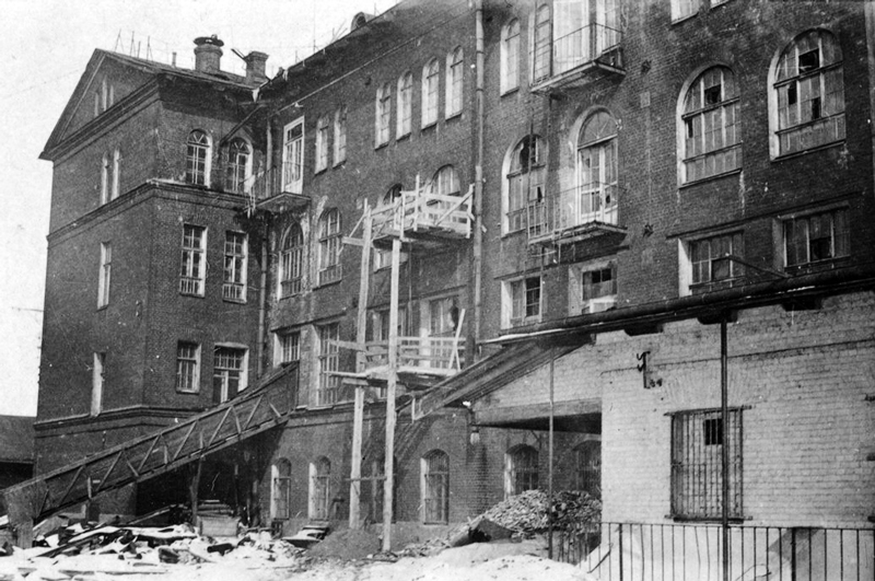Этот четырехэтажный объем отличается разнообразием окон и видов расстекловки. Для каждого этажа выбрана своя форма — узкое стрельчатое окно, окно полукруглое, прямоугольное, сдвоенное. Фасады обнимает декоративный кирпичный фриз. Автор проекта, имя которого история, к сожалению, до нас не донесла, обладал большой фантазией: в здании не найти двух одинаковых фасадов.