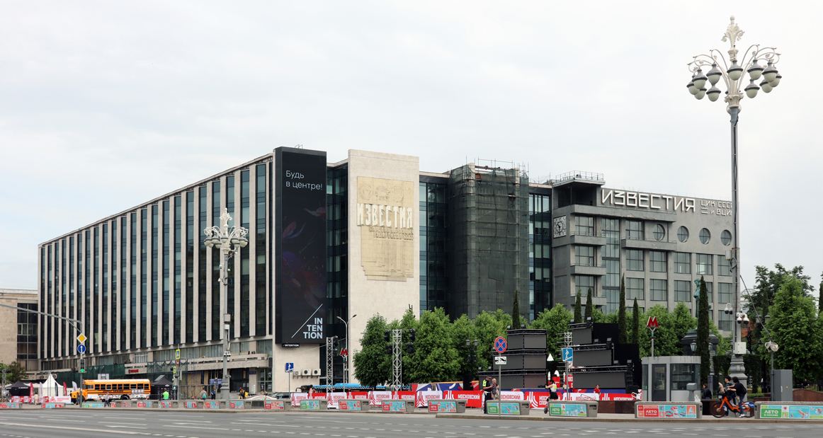 30 октября 1927 года здание было построено, сотрудники газеты заняли кабинеты. В 1931 году площадь переименовали в Пушкинскую, а монастырь, стоявший напротив, снесли. В 1975 году редакция расширилась — к зданию пристроили новый корпус по проекту Юрия Шевердяева. Для этого, несмотря на протесты писателей, снесли так называемый дом Фамусова — особняк Римских-Корсаковых, в котором бывал Александр Грибоедов. Позже, в 1979 году, ближе к Настасьинскому переулку подвинули и дом Сытина — его также включили в состав комплекса «Известий».