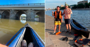 Двое гребцов проплыли по Яузе через пол-Москвы на байдарке за семь часов