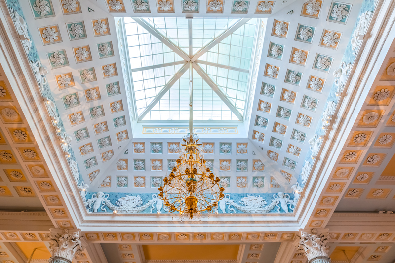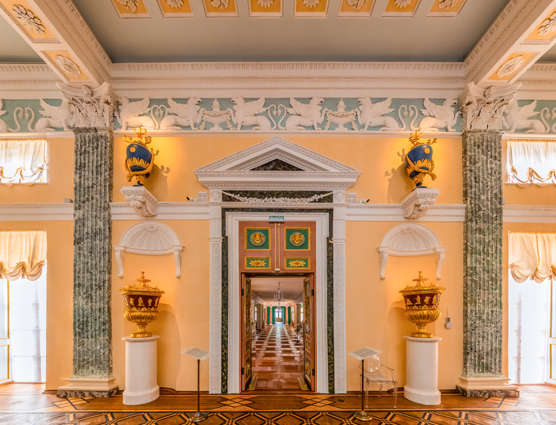 Хотя дворец закрыт на реставрацию более десяти лет назад, работы непосредственно в Египетском павильоне начались только в 2022-м. Они замедлялись тем, что реставрировать деревянное летнее помещение можно было только в теплое время года. Сейчас специалисты восстановили более 700 кв. м подлинных художественных паркетов, дверных полотен с позолоченной и посеребренной резьбой, а также искусственный мрамор, элементы лепнины, исторические печи и скульптуры сфинксов. Залы и их убранство восстановлены по описям и архивным документам ровно такими, какими они были в конце XVIII века, то есть в момент постройки дворца.