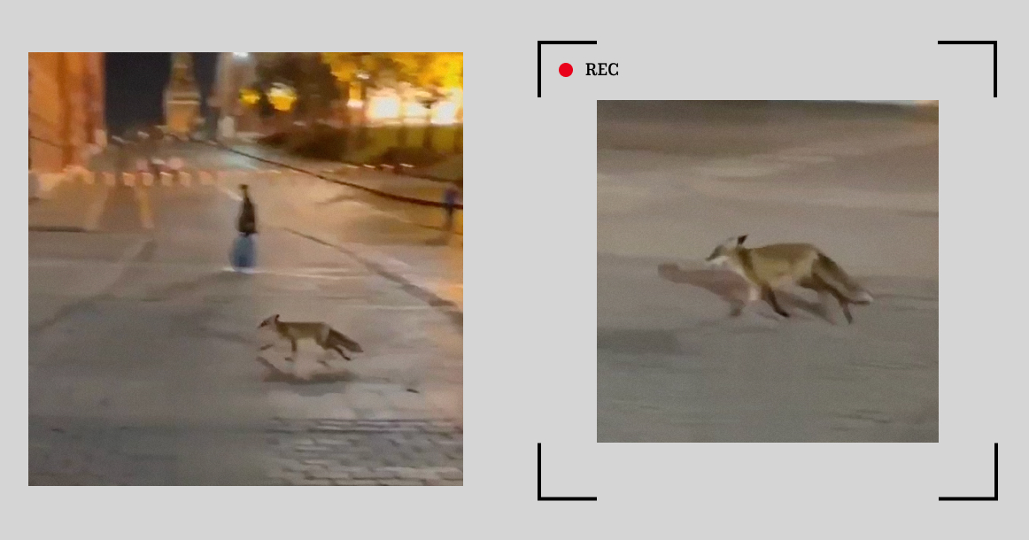 Видео опубликовал ночью канал «Москвач». «Лисица прогуливается по Манежной площади в Москве», — подписали там.